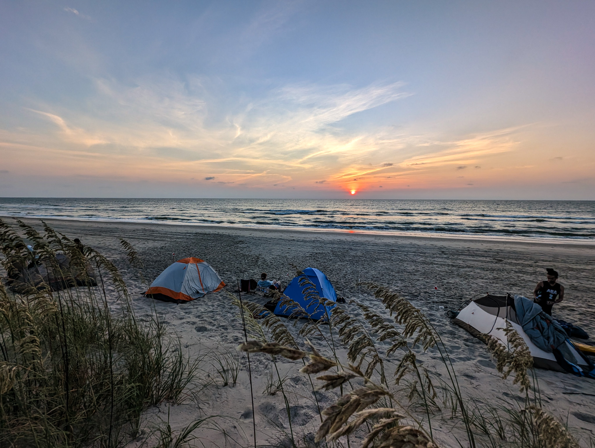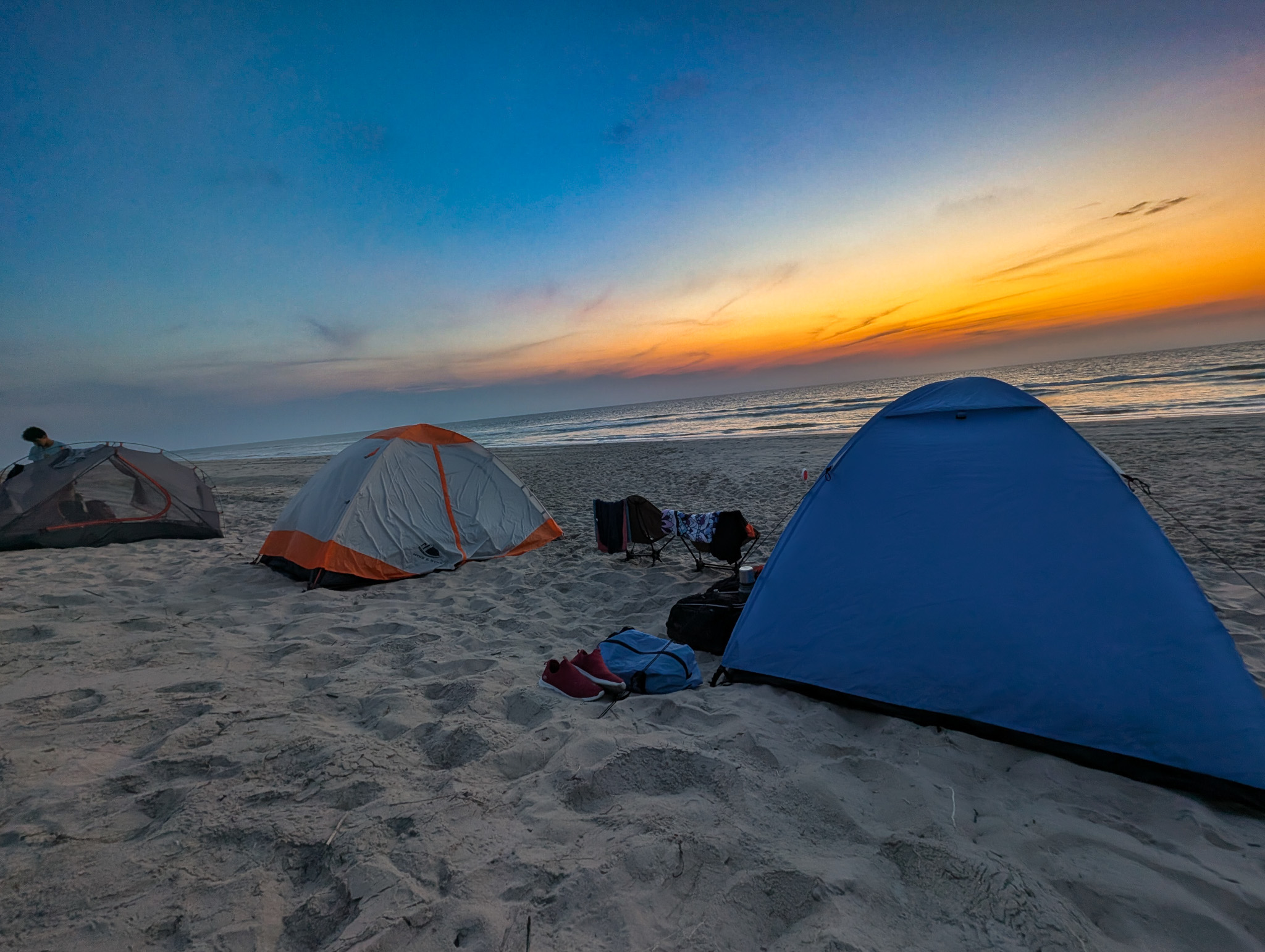 Then came the real show: the stars. With no light pollution, the night sky exploded above us. We wore our headlamps — some with red and green settings, others blinding enough to land planes — and lit up the tents just enough to avoid being crushed by beach ATVs still patrolling the sand like post-apocalyptic rovers.