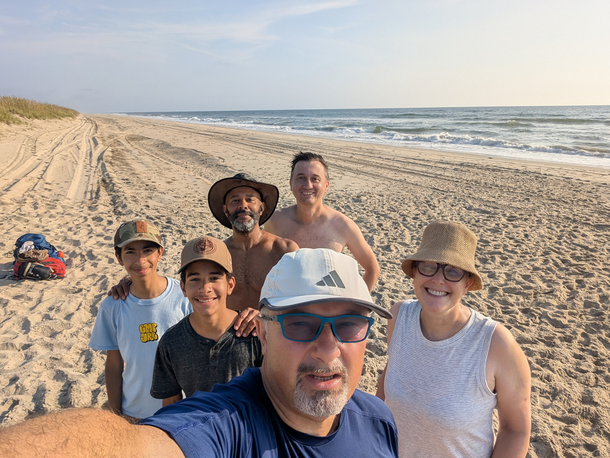 After a quick breakfast, we packed up camp, crossed the dunes to our bikes, and waved goodbye to our friends — who didn’t look particularly thrilled about another epic walk.