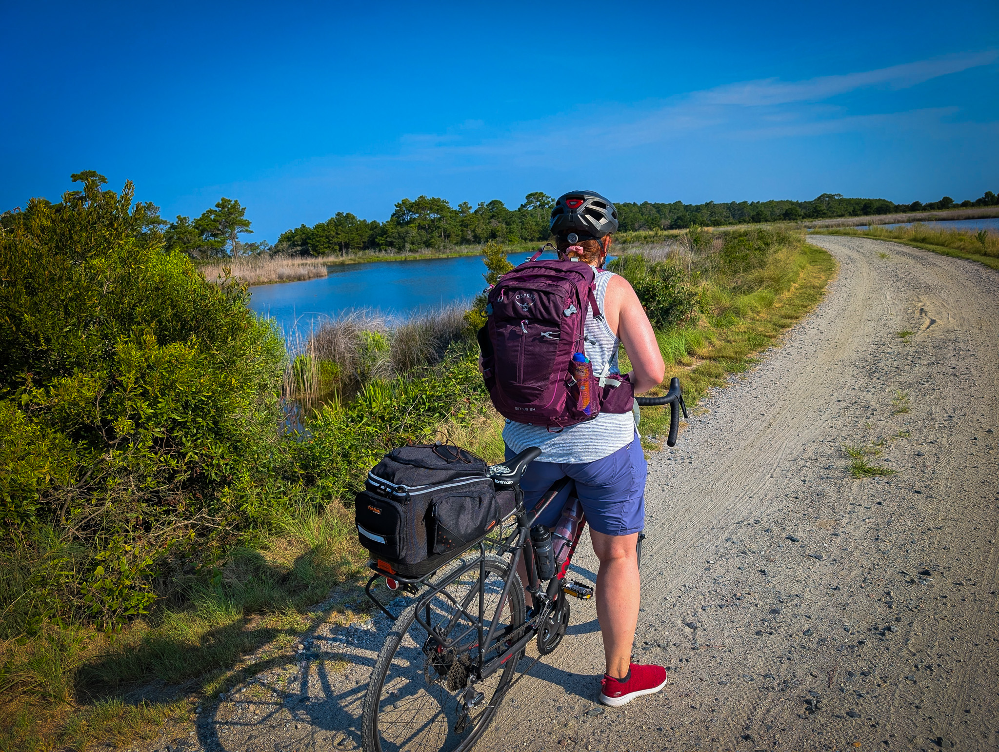 This weekend we ditched the gas and headed to False Cape State Park, a hidden gem south of Virginia Beach, squeezed between the Atlantic Ocean and Back Bay. A place so wild you can’t just GPS your way in — you need willpower, muscles, and a high tolerance for sand in uncomfortable places.